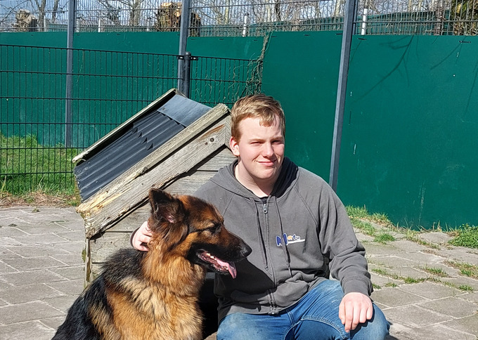 Zwen is absoluut een hondenmens. Katten vindt hij ook leuk, maar een hond past beter bij hem. Herder Kyra is één van zijn lievelingen. Het verzorgen van dieren is een verantwoordelijke taak. Dit moest Zwen vanaf het begin leren. Het team van begeleiders van Alliade heeft hem dit stapje voor stapje geleerd. Zorgvuldig de deuren sluiten, zorgen voor schone kennels, de juiste voeding geven, noem maar op. Zwen: ‘Soms gaat er wel eens iets mis, maar dat is hier geen probleem. Samen doen we ons best voor de dieren. Heel veel dingen zijn voor mij inmiddels normaal geworden. Daarom kan ik nu ook andere teamleden helpen.’